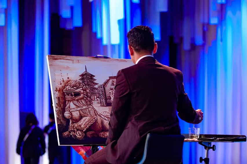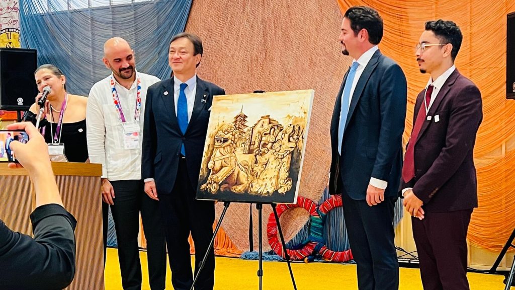 El hondureño Van Gun’s utilizó la técnica de café para crear su obra en vivo «Puente ancestral» durante La ExpoOsaka. Para Honduras representa un gran honor que un compatriota haya estado presente en este evento.
