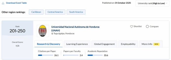 En total, QS evaluó a 492 universidades de América Latina, destacando a la UNAH como parte del grupo de élite del continente.