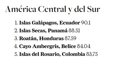 Condé Nast Traveler resalta la riqueza de Roatán. Además, resalta que la isla posee una barrera coralina, la segunda más grande del mundo, playas de arena blanca y aguas turquesas cristalinas que invitan al buceo y snorkel.